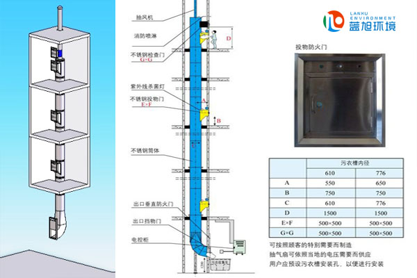 污衣槽是長久、快捷、衛(wèi)生和經(jīng)濟運送污衣到底層洗衣房的最有效設施,當配備電鎖系統(tǒng)后防止臭味及細菌向低層擴散,因為當污衣由高層滑落時,下方的操作人員在開啟污衣投物門后,外泄氣流,此氣流同時將臭味及細菌由高層傳播到低層。污衣槽是采用進口優(yōu)質(zhì)不銹鋼加工以角形圓環(huán)接口結(jié)合,允許各層樓的槽管在高度上的尺寸和冷縮熱脹的情況。在每層樓,樓臺固定架支承,并用螺栓錨固于地臺上。污衣槽在所需的樓層提供的投物門為正鉸、雙層門,門鎖也可以人手操作。